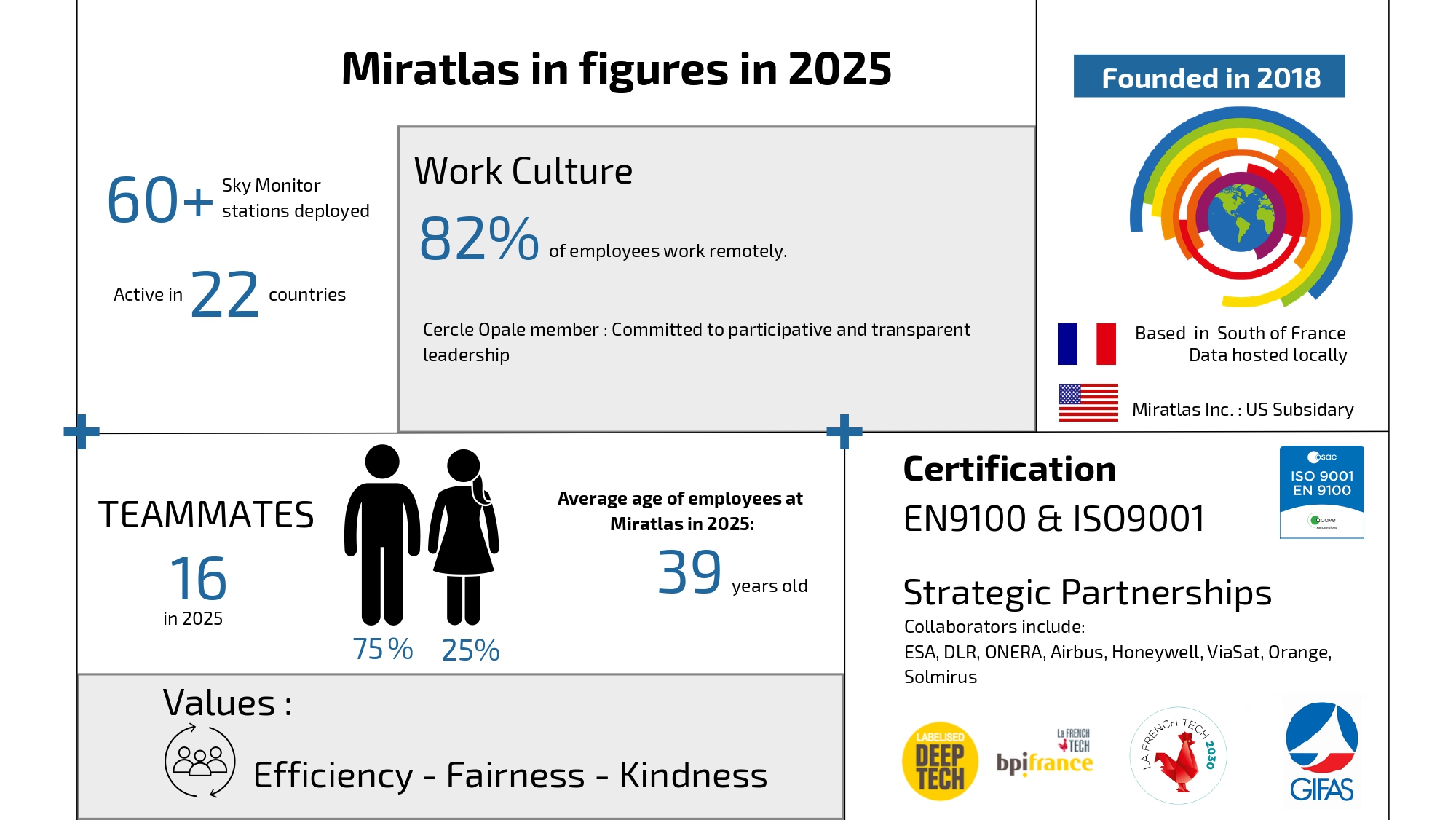 In 2022, Miratlas has raised two million euros of investment in funding with Karista (Cosmicapital) and Région Sud Investissement and Expansion (Geodesic), to accelerate its development and position itself as the world leader in the collection, processing and forecasting of optical atmospheric data.